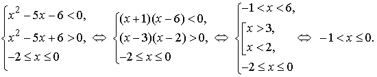 Откуда, с помощью равносильных преобразований, и применяя метод интервалов для решения квадратных неравенств, получаем