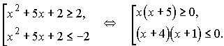 Откуда, применяя метод интервалов для квадратных неравенств, получаем множество решений