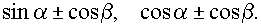 n–го члена и суммы первых n членов арифметической прогрессии. Формула n–го члена и суммы первых n членов геометрической прогрессии.19. Синус и косинус суммы и разности двух аргументов (формулы).