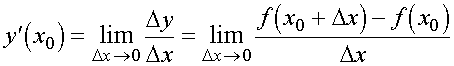 Производной функции y = f(x) в точке x0 называется предел отношения приращения |