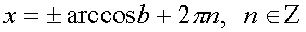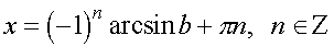 В таблице приведены решения простейших уравнений