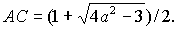 задача имеет одно решение АС=1/2;