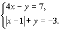 y= 4x-7 (из первого уравнения системы) во второе уравнение (либо сложить оба уравнения), что привело бы к необходимости решать следующее уравнение|x-1|+4x= 4