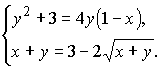 u1= 1, u2= -3. Но второй корень отпадает в силу требования неотрицательности новой переменной. Теперь приходим к решению следующей системы|