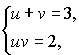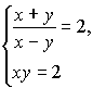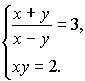 u1= 1, v1= 2; u2= 2, v2= 1. Тогда для исходной системы необходимо рассмотреть следующую совокупность систем уравнений|