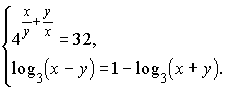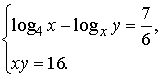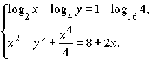 предварительного логарифмирования (второго уравнения системы по основанию x или по основанию 4) и алгебраического сложения