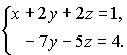 Пусть во втором уравнении “свободным” неизвестным будет z.