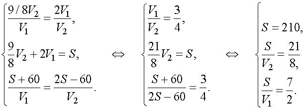 Пусть скорость грузового автомобиля V1 км/ч, скорость легкового автомобиля V2 км/ч, а расстояние от А до В равно S км.Тогда имеем: