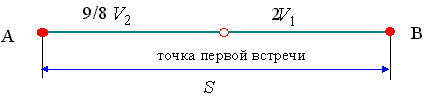После встречи грузовой автомобиль прибывает в B через 2 ч, легковой автомобиль в А через 9/8 ч. |