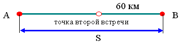 Приехав в конечный пункт, они тут же поворачивают обратно, и на обратном пути встречаются в 60 км. |