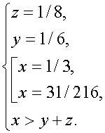 Заметим, что x=31/216 не удовлетворяет последнему неравенству системы, а следовательно, искомым решением будет лишь x = 1/3. |