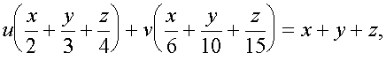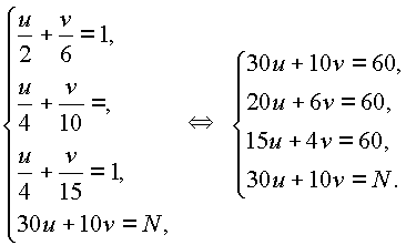 N = 30u + 10vПриравнивая в (1) коэффициенты при неизвестных