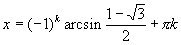 x=(-1)n π /12+π n/2, x=π /4⋅ (4k+1), n, k∈ Z