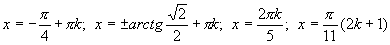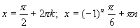 x=3π /4+π n, x=(-1)nπ /4-π /4+π n.