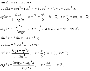 Формулы двойных и тройных аргументов.