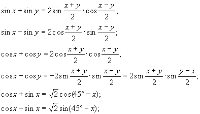 Формулы преобразования суммы и разности тригонометрических функций в произведение.