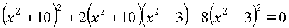 (x2 + 3x)4 – 17(x2 + 3x)2 + 16 = 0 |