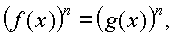 области определения уравнения, возвести в одну и ту же натуральную степень n, |