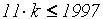 общий вид: 11×k, где k-натуральное число и то получаем Следовательно, натуральных чисел, не делящихся на 11 и не превосходящих 1997, будет