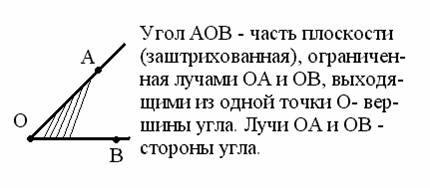 тему измерения углов с помощью транспортира. Угол в 90° называют прямым, меньший 90°