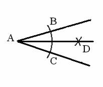 называется биссектрисой угла). Построение. Пусть А - вершина данного угла. С центром в А строим окружность. Обозначим через В и С точки пересечения окружности со
