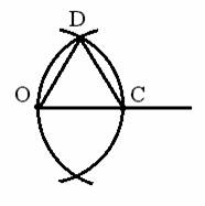 окружностей обозначим D. Линейкой через точки О и С, С и D, O и D проведем прямые. Тогда ОСD - треугольник, который нам необходимо было построить. Замечание: в этом упражнении мы научились строить угол в 60°.