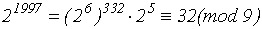 пишут или кратко Упражнение 1. Равноостаточны ли при делении на 1997 числа Решение. При d = 1997 получаем 2000º 3, 3995º 1, 1999º 2, 1996º -1, 2050º 53, 1998º 1 и по