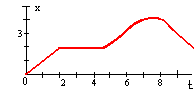 Дан график движения пешехода. Что происходит со скоростью движения в указанные промежутки времени? (Вопрос относится не к модулю скорости, а к скорости как к величине, имеющей знак). Перетащите мышью интервал на соответствующие высказывание и нажмите кнопку "Проверить",учтите,что одному высказыванию могут соответствовать два интервала.
